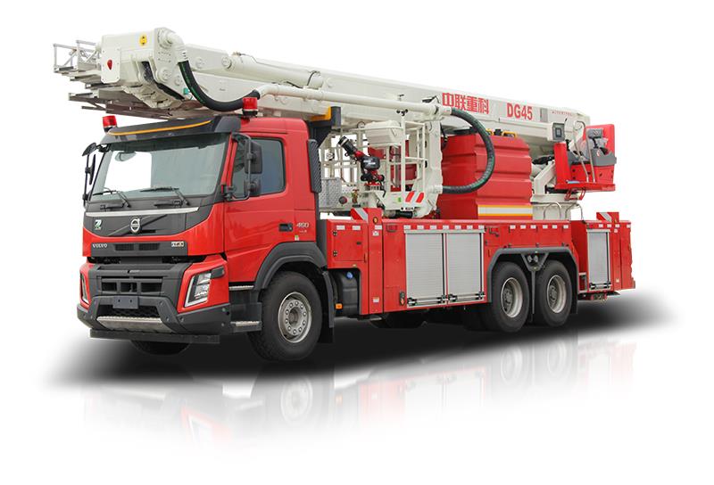 中联重科DG45型登高平台消防车,结合国际上消防车的先进理念和消防实战经验创新设计而成,具备强大的高空救援和消防灭火能力,整车性能优越,快速高效,操作性、安全性及智能化控制处于国内领先水平。