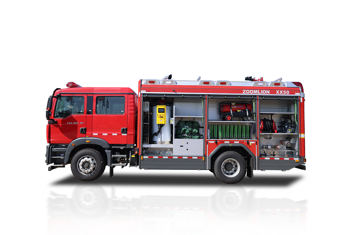 中联牌XX50型洗消消防车,是专门针对危化事故救援、被污染的人员及地面设备进行洗消而研制的新型特种车辆。车辆集成化学洗消、消防灭火、应急照明三大功能模块,具备强大的综合救援能力,一车多用,适用于消防应急救援履行灭火和化学事故处理等任务。