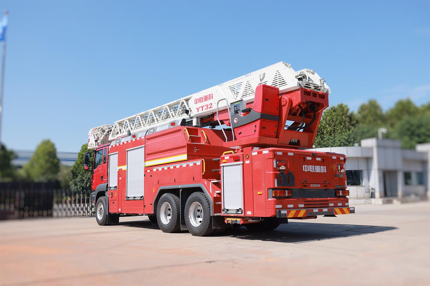 中联牌YT32型汕德卡底盘云梯消防车,结合国内外消防车的先进理念和消防实战创新设计而成,具备强大的灭火功能和高空救援能力。车辆搭载国内一线品牌汕德卡底盘,动力强劲,性能卓越,性价比极高。